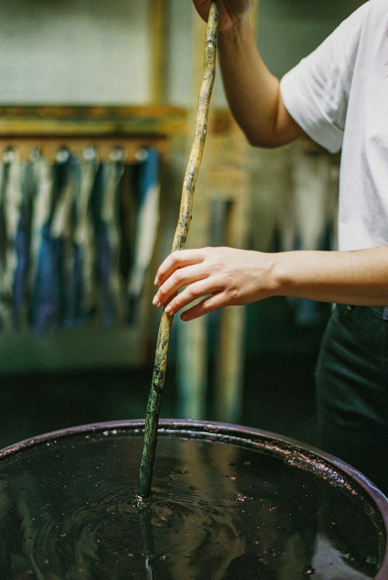 These base sheets are then treated with dyes including Indigo, Black Walnut, Persimmon, and Pomegranate Rind, applied individually or in layered combinations. Anywhere from two to eight layers of dye may be applied to a single sheet of paper, depending on the design. Some sheets feature pigmented pulp, inclusions, or mica for additional texture and visual interest.