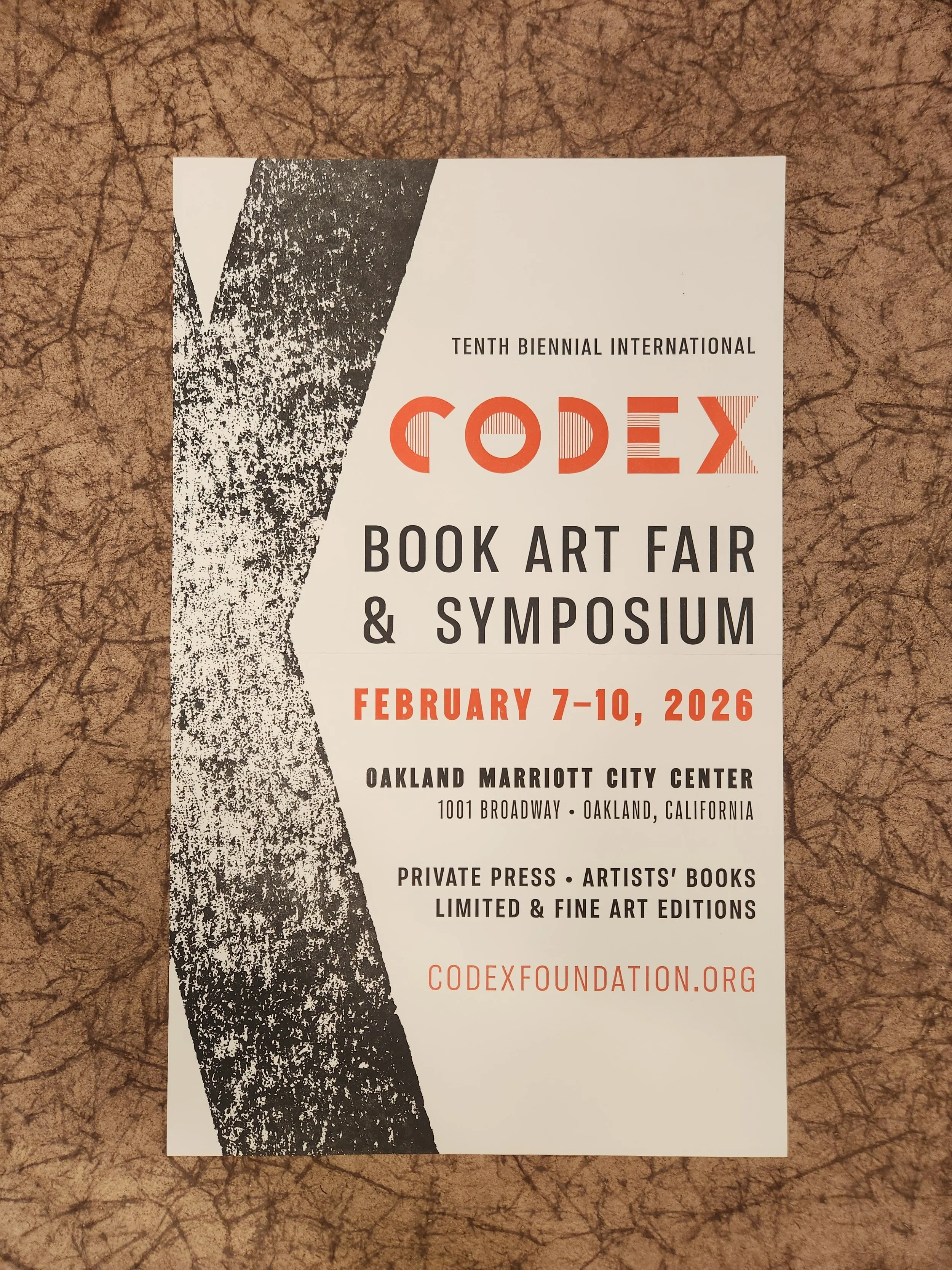 Cave Paper is excited to be tabling at the CODEX X Book Art Fair in Oakland, CA, one of the premier gatherings for artists’ books, fine presses, papermakers, bookbinders, printmakers, and all makers and admirers of the book as an art form.